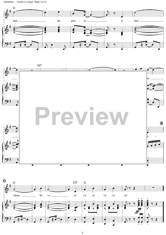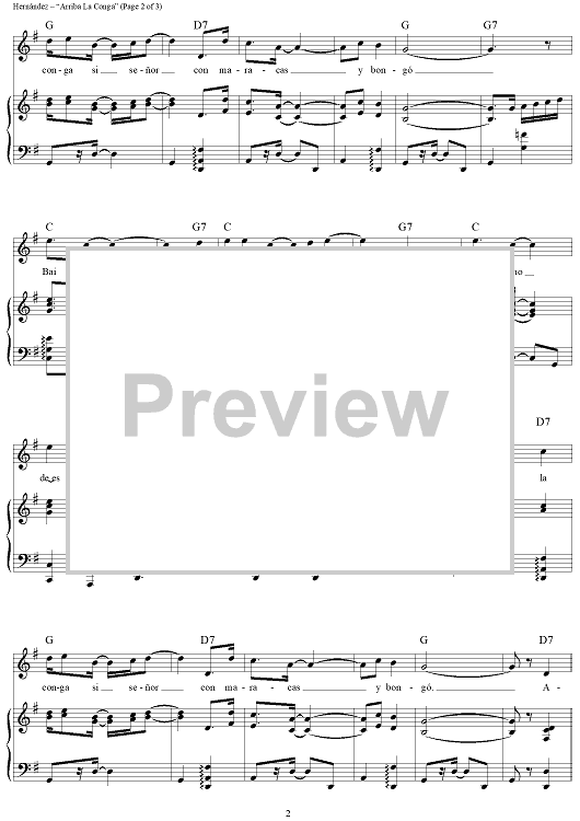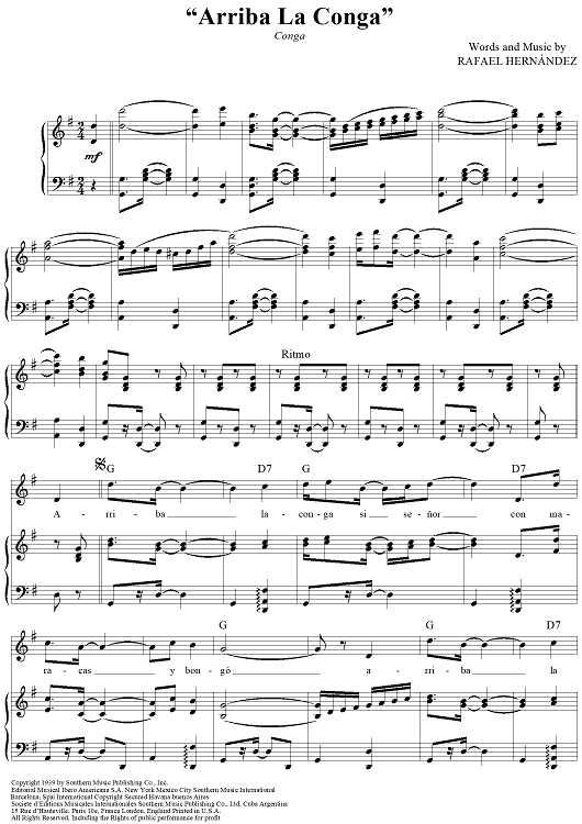 Digital Sheet Music for Arriba La Conga by Rafael Hernández scored for Piano/Vocal/Chords; id:423129