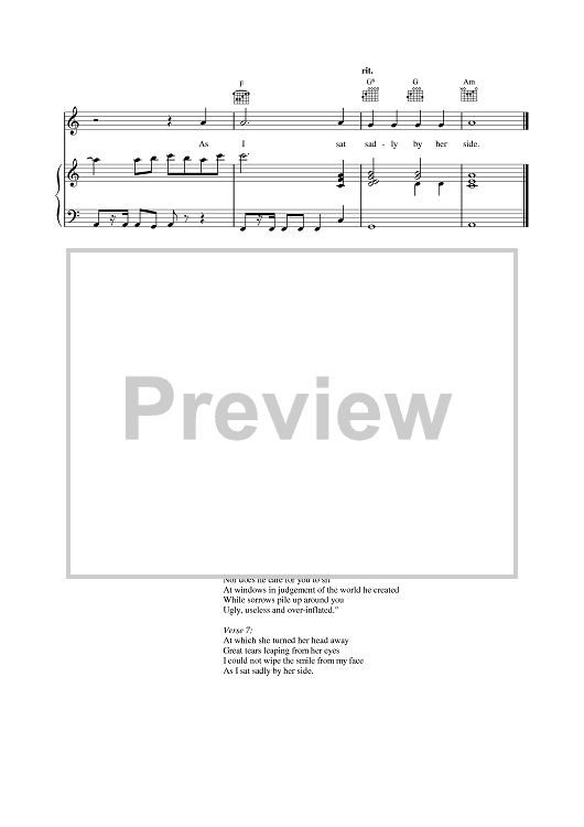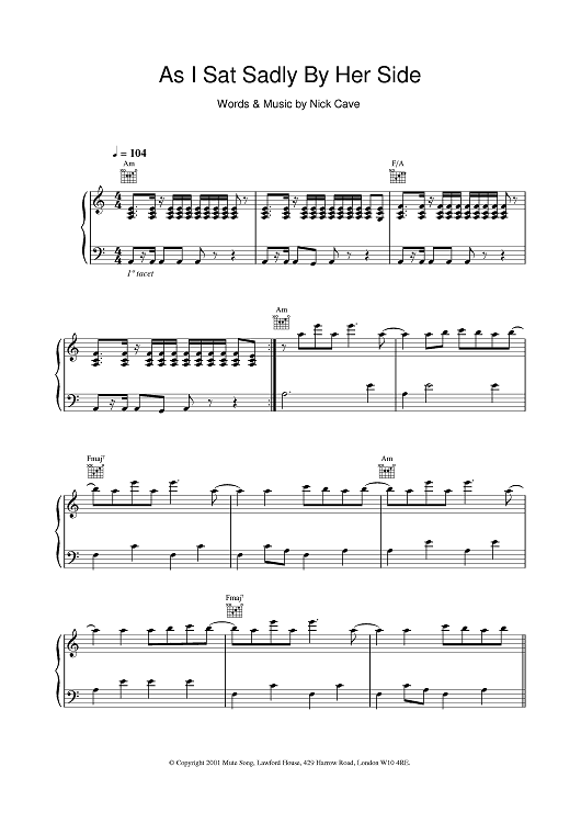 Digital Sheet Music for As I Sat Sadly By Her Side by Nick Cave scored for Piano/Vocal/Chords; id:377371