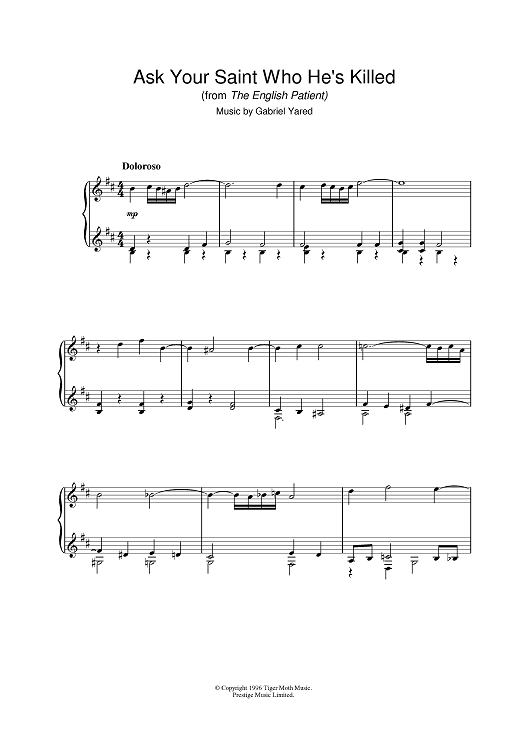 "Ask Your Saint Who He's Killed" Sheet Music by Gabriel Yared