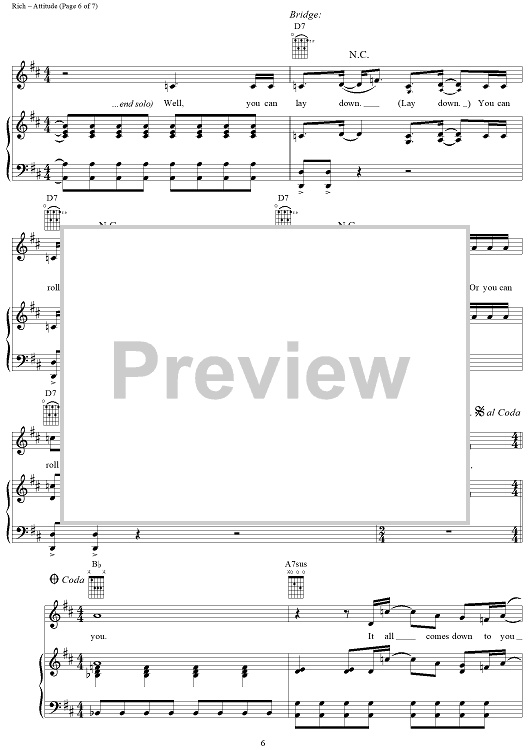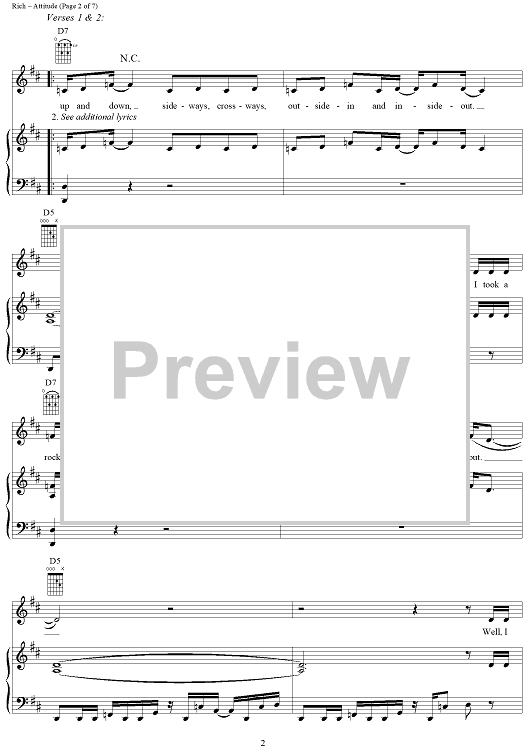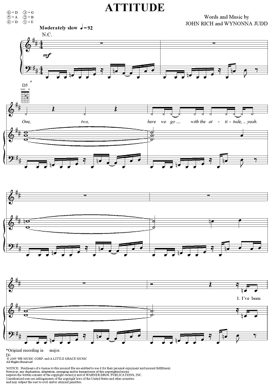 Digital Sheet Music for Attitude by John Rich, Wynonna Judd scored for Piano/Vocal/Chords; id:317764