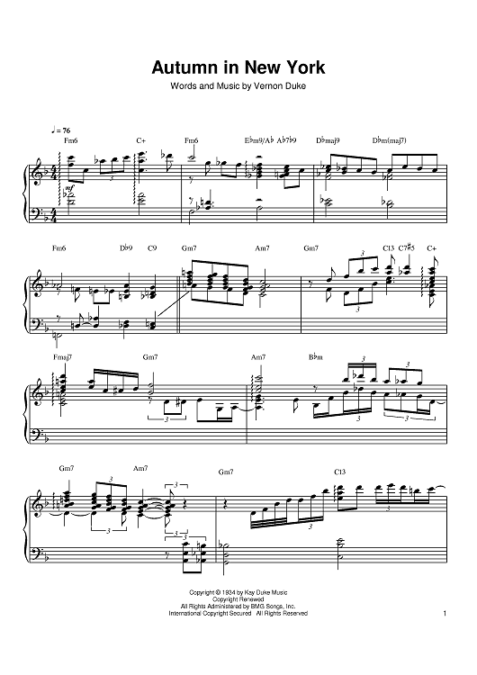 Digital Sheet Music for Autumn In New York by Vernon Duke, Jo Stafford, Al Haig, Bud Powell scored for Piano; id:374030