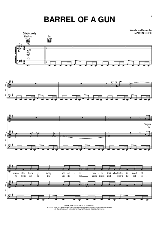 Digital Sheet Music for Barrel Of A Gun by Martin Gore, Depeche Mode scored for Piano/Vocal/Chords; id:396236