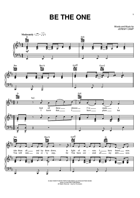 Digital Sheet Music for Be The One by Jeremy Camp scored for Piano/Vocal/Chords; id:381865