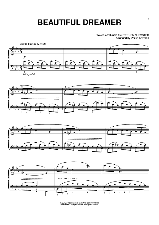 Digital Sheet Music for Beautiful Dreamer by Phillip Keveren, Stephen Foster scored for Piano; id:393065