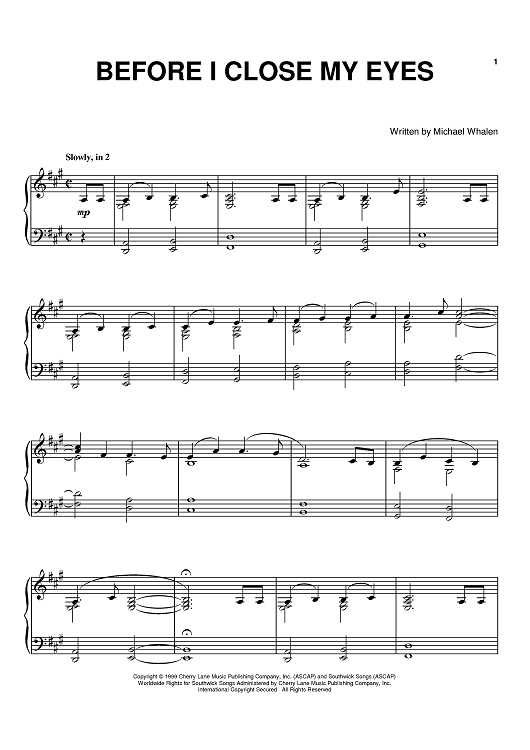 "Before I Close My Eyes" Sheet Music by Michael Whalen