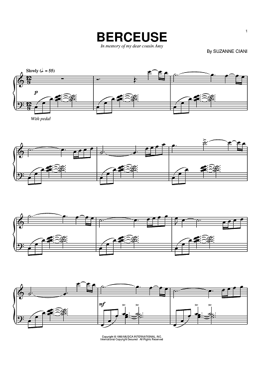 "Berceuse" Sheet Music by Suzanne Ciani