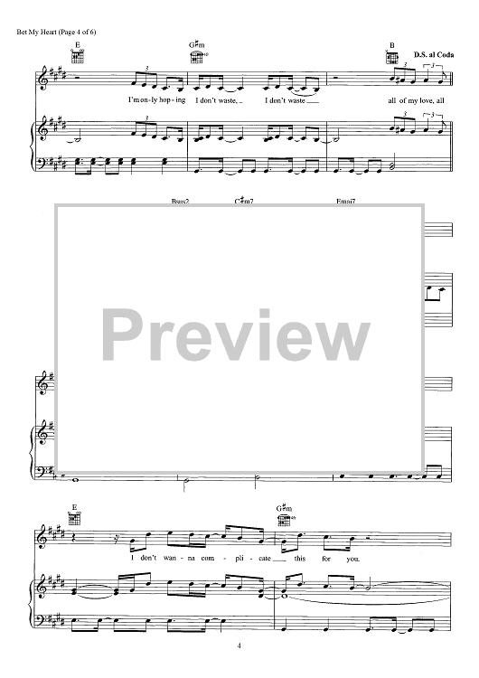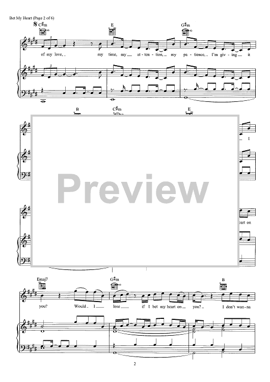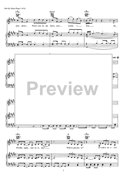 Digital Sheet Music for Bet My Heart by Adam Levine, Maroon 5, Jacob Hindlin, John Ryan, Phil Shaouy scored for Piano/Vocal/Chords; id:466271