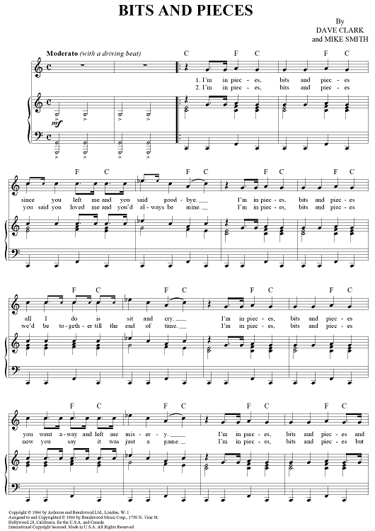 Digital Sheet Music for Bits and Pieces by The Dave Clark Five, Dave Clark, Mike Smith scored for Piano/Vocal/Chords; id:366108