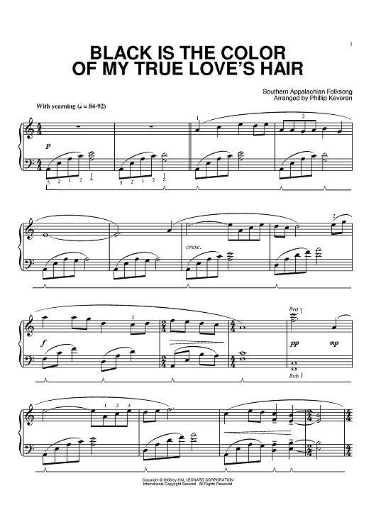 Digital Sheet Music for Black Is the Color of My True Love's Hair by Phillip Keveren scored for Piano; id:393066