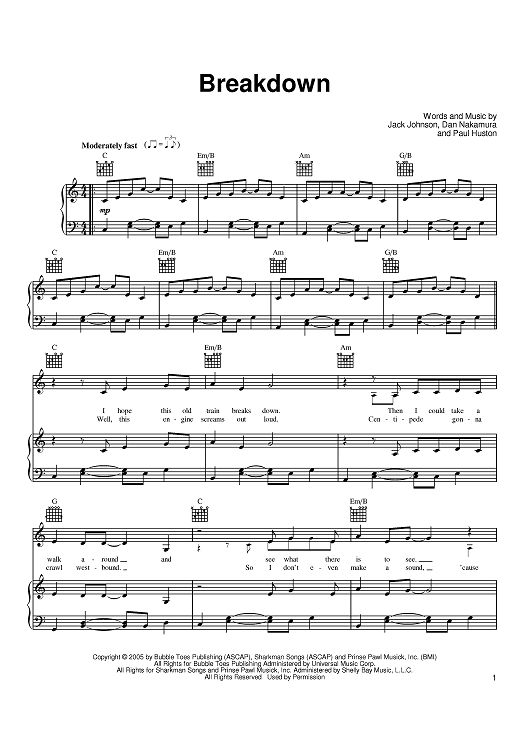 Digital Sheet Music for Breakdown by Paul Huston, Jack Johnson, Dan Nakamura scored for Piano/Vocal/Chords; id:389789