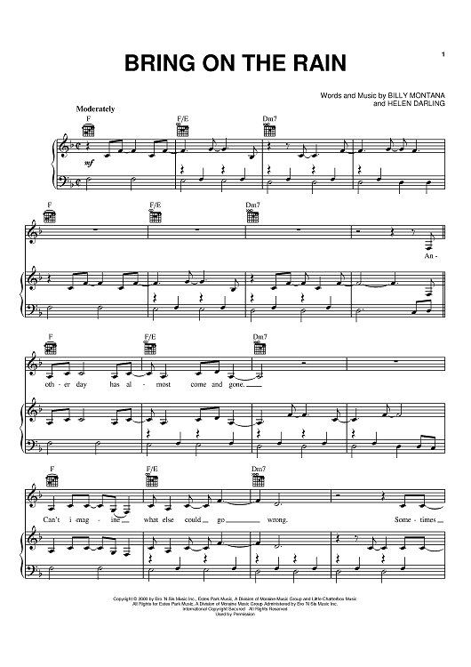 Digital Sheet Music for Bring On The Rain by Jo Dee Messina, Tim McGraw, Billy Montana, Helen Darling scored for Piano/Vocal/Chords; id:368853