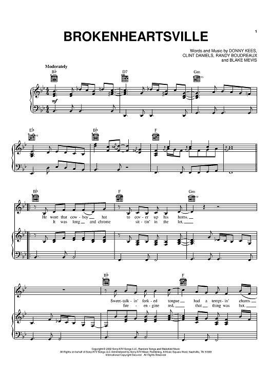 Digital Sheet Music for Brokenheartsville by Donny Kees, Randy Boudreaux, Clint Daniels, Joe Nichols scored for Piano/Vocal/Chords; id:370659