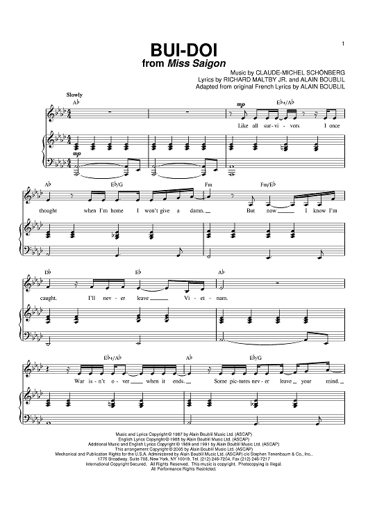 Digital Sheet Music for Bui-Doi by Claude-Michel Schonberg, Alain Boublil, Richard Maltby Jr. scored for Piano/Vocal/Chords; id:387246