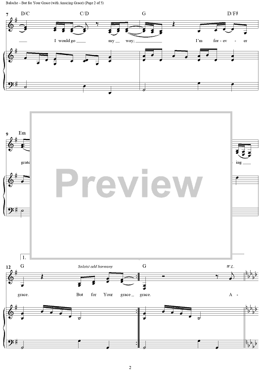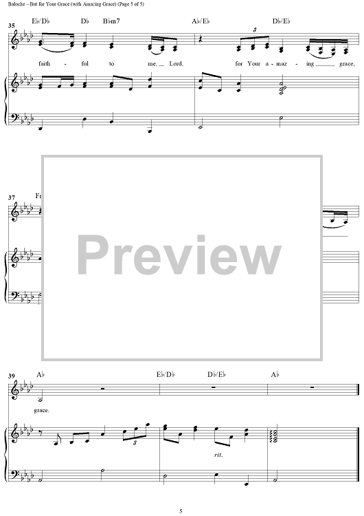 Digital Sheet Music for But for Your Grace (with Amazing Grace) by Rita Baloche scored for Piano/Vocal/Chords; id:314542