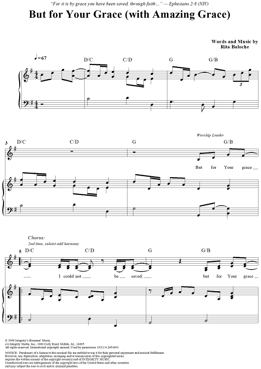 "But for Your Grace (with Amazing Grace)" Sheet Music by Rita Baloche