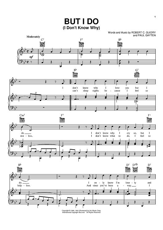 Digital Sheet Music for But I Do (I Don't Know Why) by Bobby Charles, Paul Gayten, Clarence Henry, The Jewels scored for Piano/Vocal/Chords; id:368699