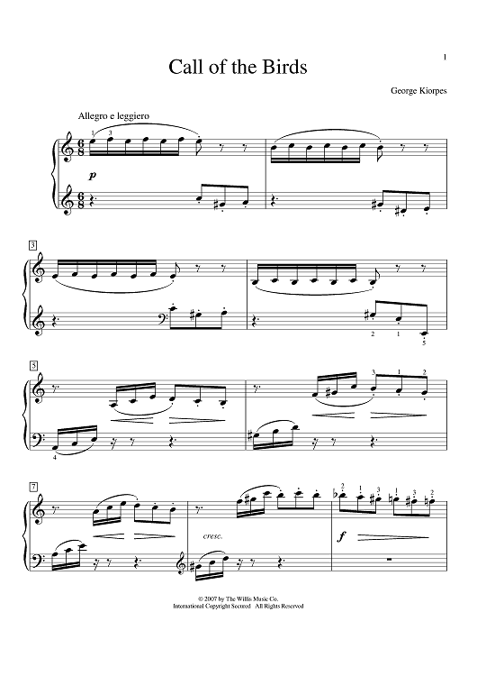 Digital Sheet Music for Call Of The Birds by George Kiorpes scored for Piano; id:396152