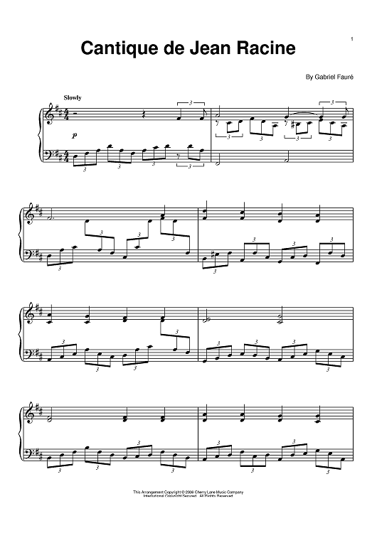 Digital Sheet Music for Cantique De Jean Racine by Gabriel Fauré scored for Piano; id:389498