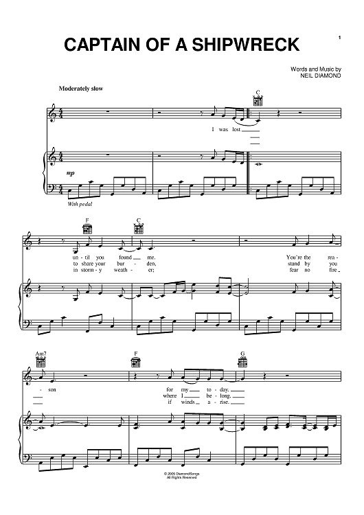 Digital Sheet Music for Captain Of A Shipwreck by Neil Diamond scored for Piano/Vocal/Chords; id:390058