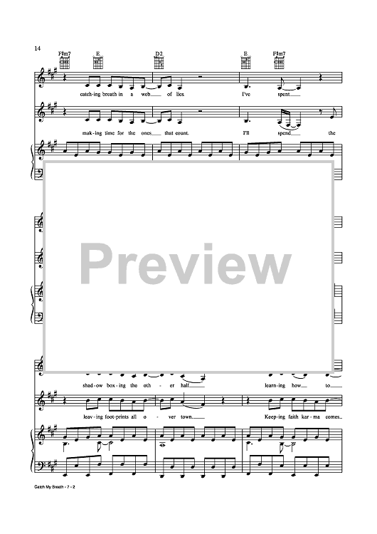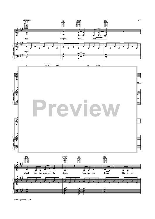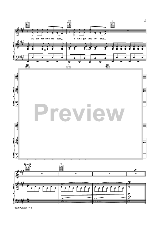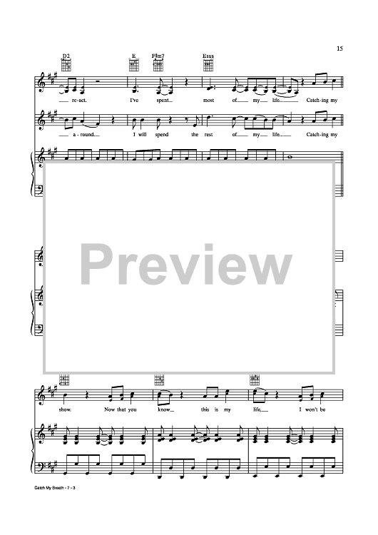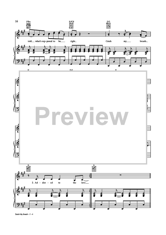 Digital Sheet Music for Catch My Breath by Jason Halbert, Kelly Clarkson, Eric Olson scored for Piano/Vocal/Chords; id:435276