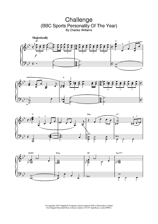 Digital Sheet Music for Challenge (BBC Sports Personality Of The Year) by Charles Williams scored for Piano; id:380822