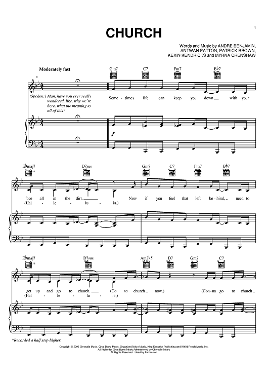 Digital Sheet Music for Church by André 3000, Big Boi, OutKast, Patrick Brown scored for Piano/Vocal/Chords; id:375077