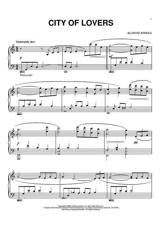 Digital Sheet Music for City Of Lovers by David Arnold scored for Piano; id:402381