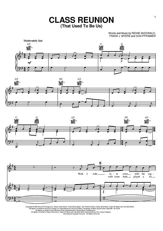 Digital Sheet Music for Class Reunion (That Used To Be Us) by Lonestar, Frank Myers, Don Pfrimmer, Richie McDonald scored for Piano/Vocal/Chords; id:383284