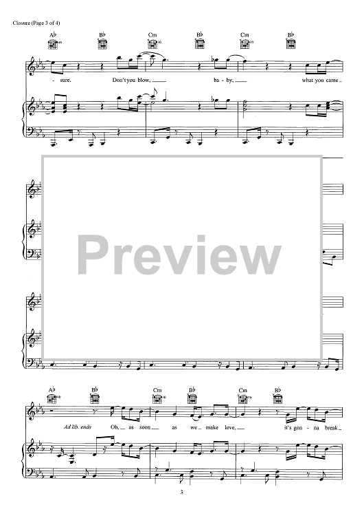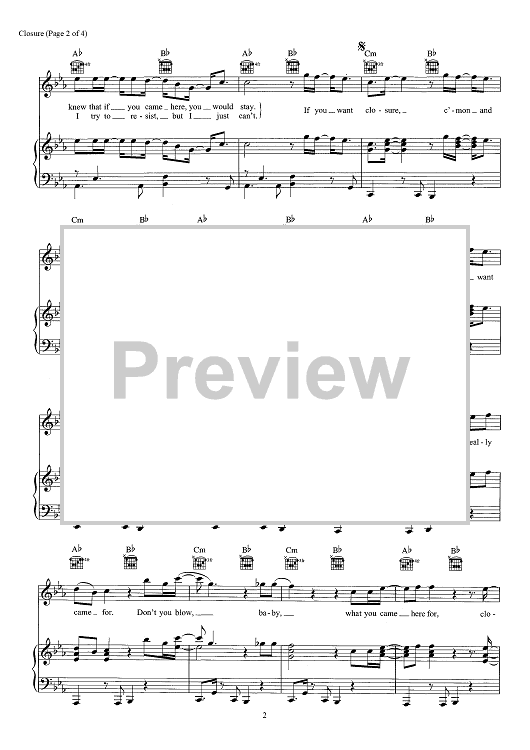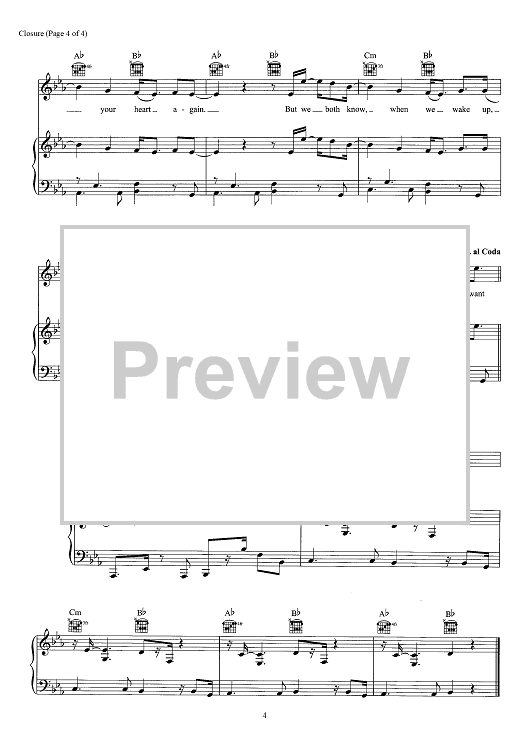 Digital Sheet Music for Closure by Adam Levine, Maroon 5, Jacob Hindlin, John Ryan, Ammar Malik, Phil Shaouy scored for Piano/Vocal/Chords; id:466272