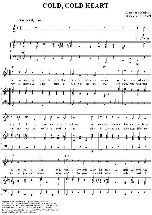 "Cold, Cold Heart" Sheet Music by Hank Williams