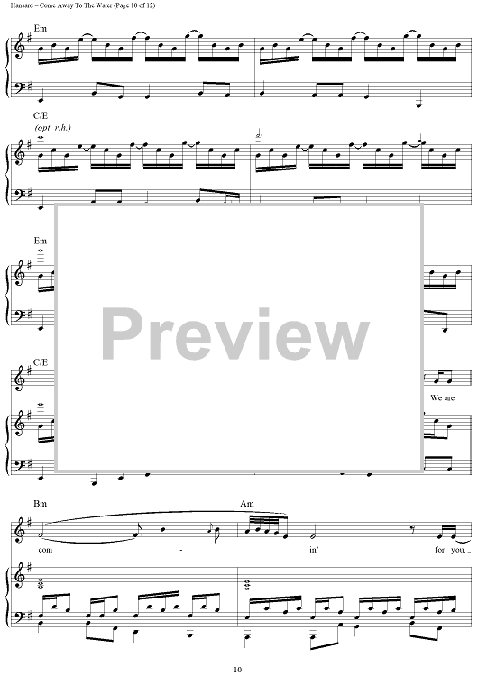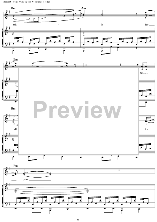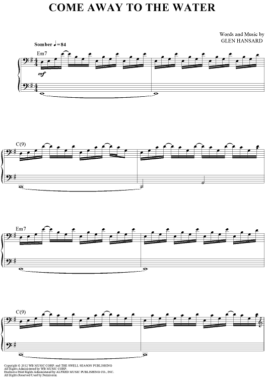 Digital Sheet Music for Come Away To The Water by Maroon 5, Glen Hansard scored for Piano/Vocal/Chords; id:430129