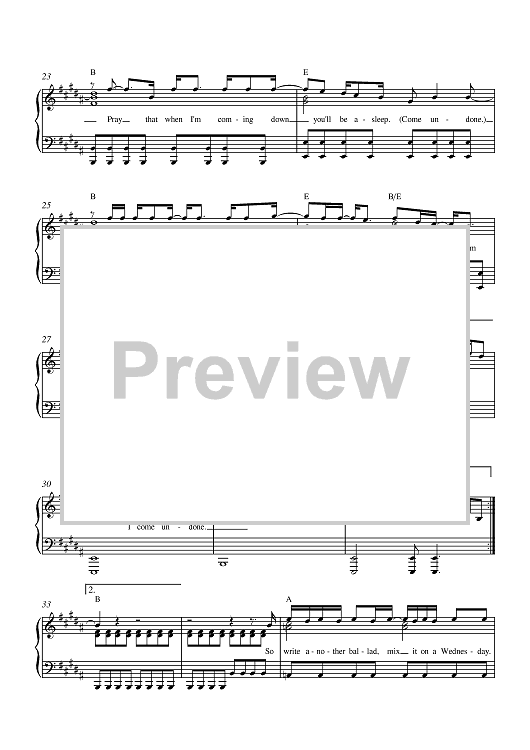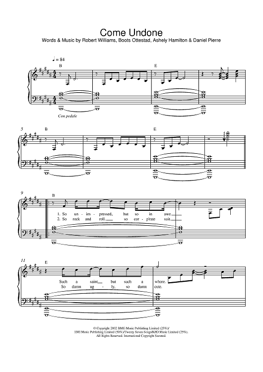 Digital Sheet Music for Come Undone by Robbie Williams scored for Piano; id:377826