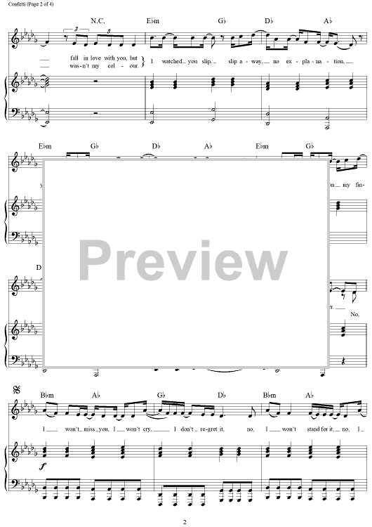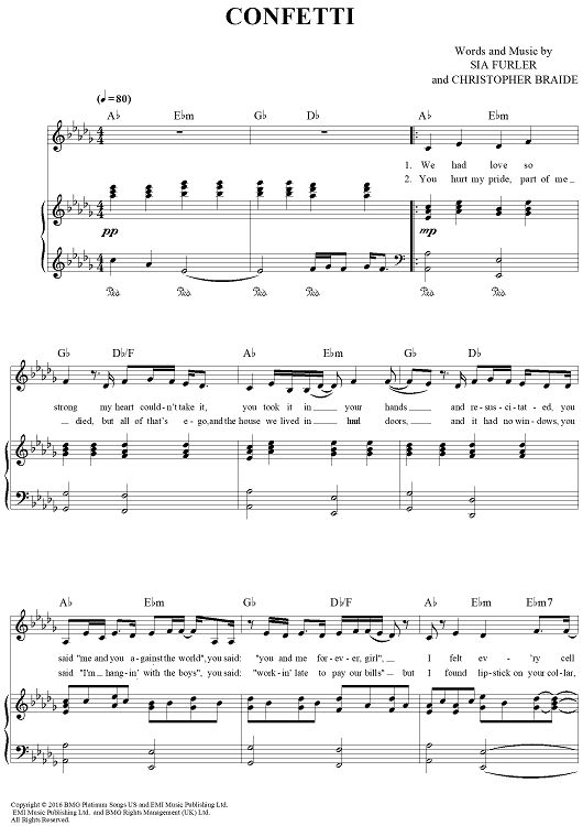 Digital Sheet Music for Confetti by Sia Furler, Sia, Chris Braide scored for Piano/Vocal/Chords; id:462970