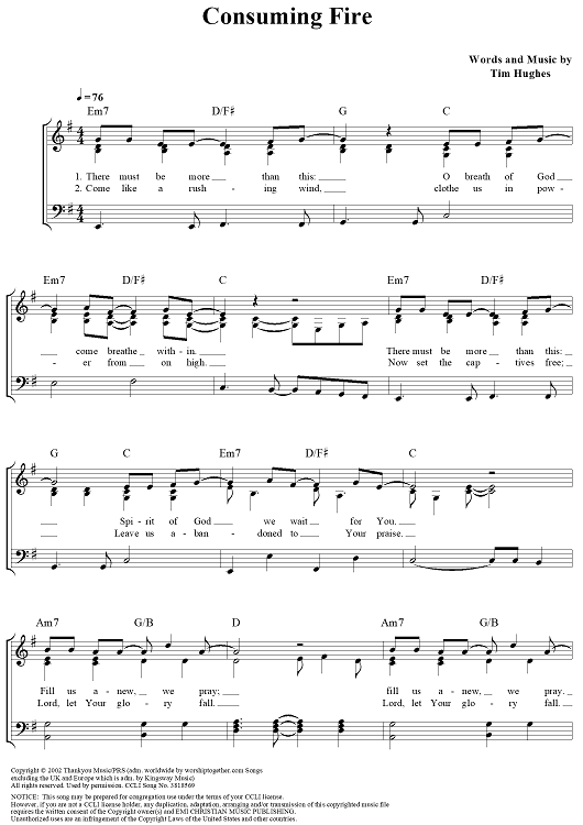 Digital Sheet Music for Consuming Fire by Tim Hughes scored for Piano/Vocal/Chords; id:358907