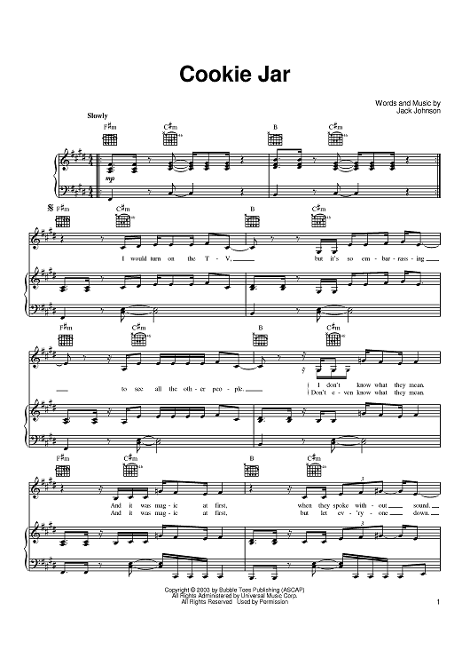 Digital Sheet Music for Cookie Jar by Jack Johnson scored for Piano/Vocal/Chords; id:389779
