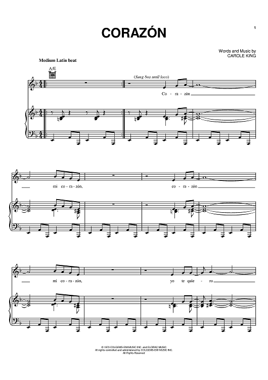 Digital Sheet Music for Corazon by Carole King scored for Piano/Vocal/Chords; id:395445