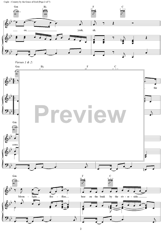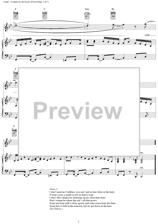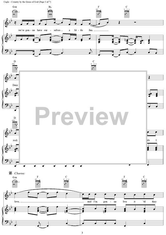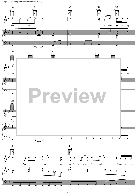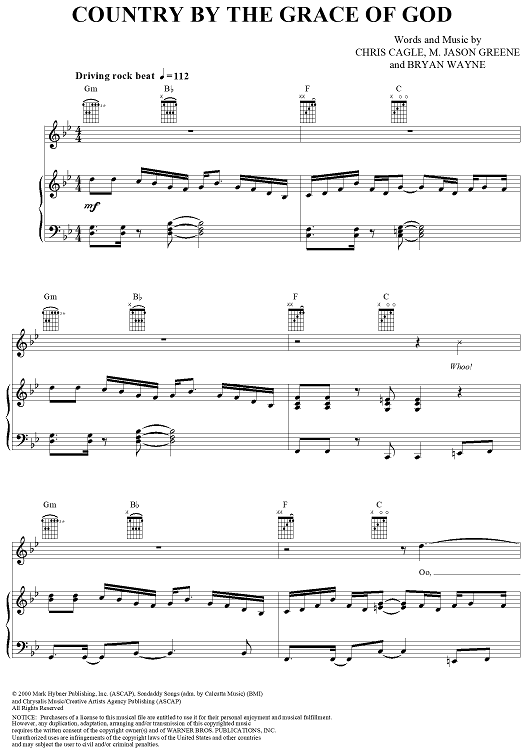 Digital Sheet Music for Country By the Grace of God by Chris Cagle, M. Jason Greene, Bryan Wayne scored for Piano/Vocal/Chords; id:291100