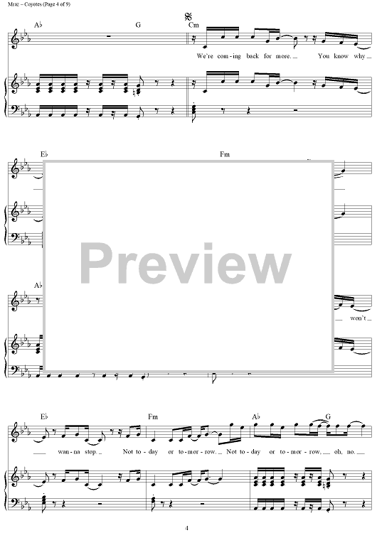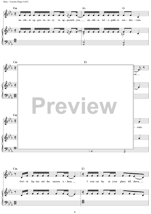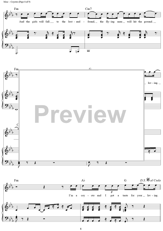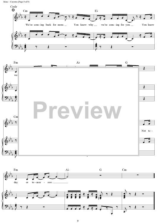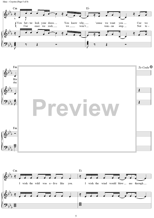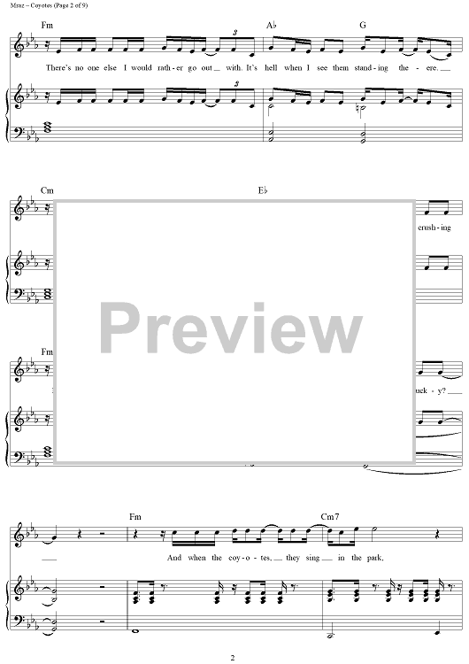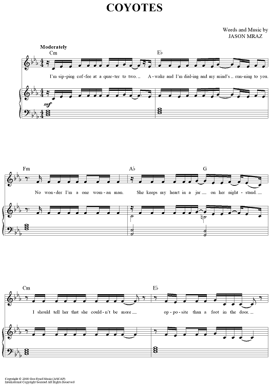 Digital Sheet Music for Coyotes by Jason Mraz scored for Piano/Vocal/Chords; id:448732