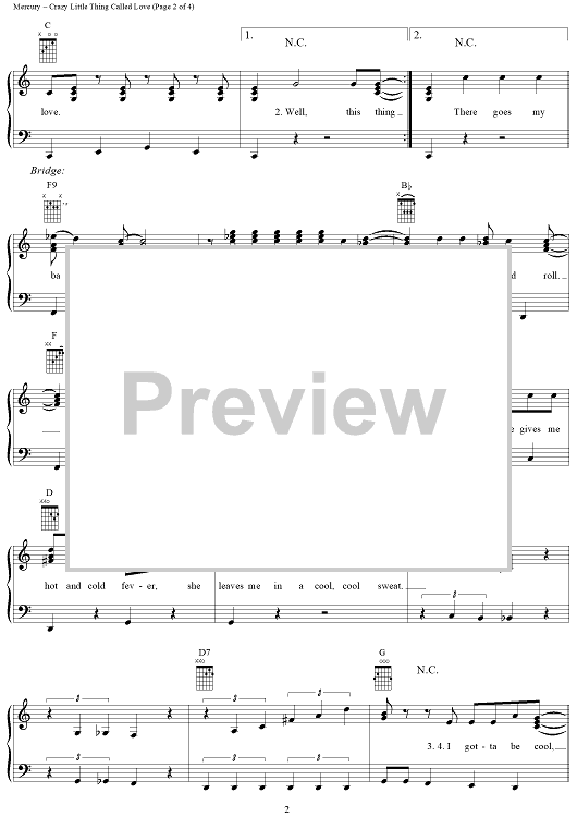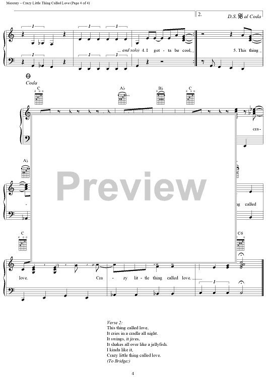 Digital Sheet Music for Crazy Little Thing Called Love by Queen, Freddie Mercury, Dwight Yoakam, Michael Buble scored for Easy Piano/Vocal/Chords; id:241142