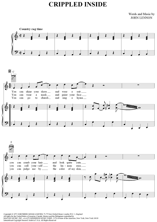 Digital Sheet Music for Crippled Inside by John Lennon scored for Piano/Vocal/Chords; id:365296