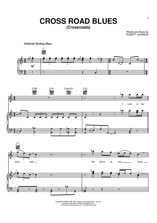 "Cross Road Blues (Crossroads)" Sheet Music by Eric Clapton