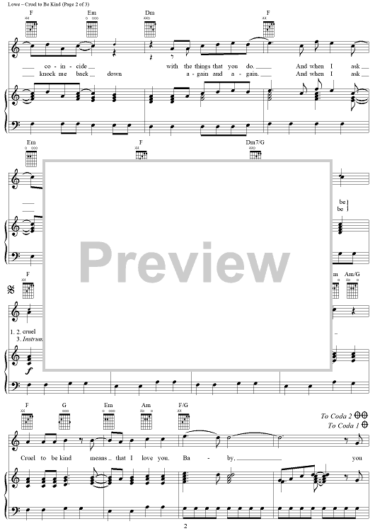 "Cruel to Be Kind" Sheet Music by Nick Lowe
