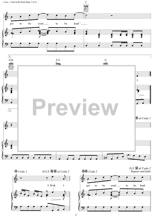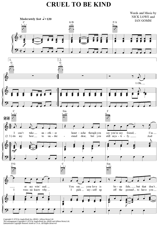 Digital Sheet Music for Cruel to Be Kind by Nick Lowe, Ian Gomm scored for Piano/Vocal/Chords; id:365425