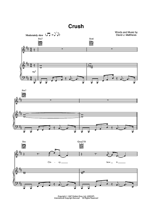 Digital Sheet Music for Crush by Dave Matthews scored for Piano/Vocal/Chords; id:416422