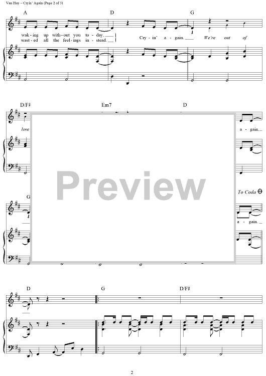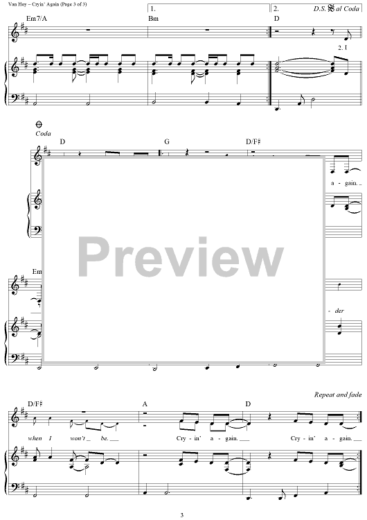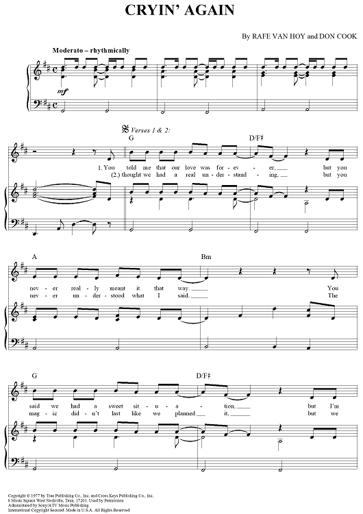 Digital Sheet Music for Cryin' Again by Rafe Van Hoy, Don Cook, The Oak Ridge Boys scored for Piano/Vocal/Chords; id:362346