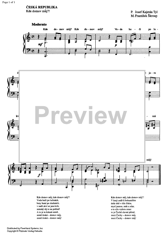 "Czech Republic - Kde domov muj?!" Sheet Music by Frantisek Skroup