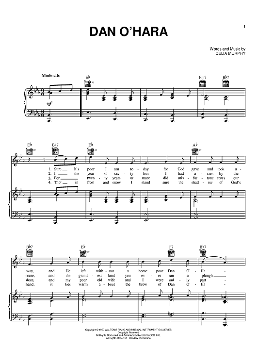 Digital Sheet Music for Dan O'Hara by Delia Murphy scored for Piano/Vocal/Chords; id:393711