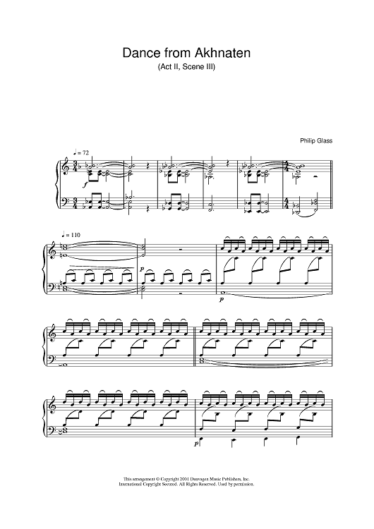 Digital Sheet Music for Dance from Akhnaten, Act 2 Scene 3 by Philip Glass scored for Piano; id:383388