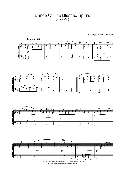 "Dance Of The Blessed Spirits" Sheet Music by Christoph Willibald Glück