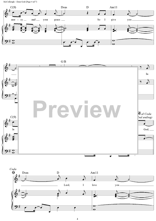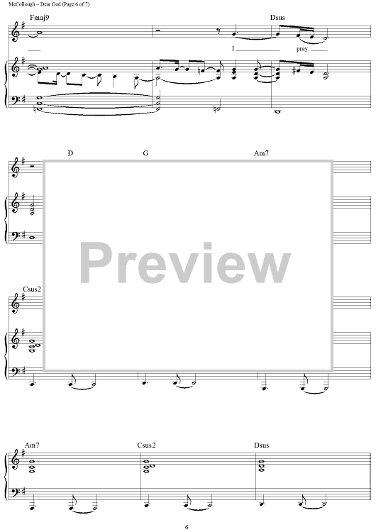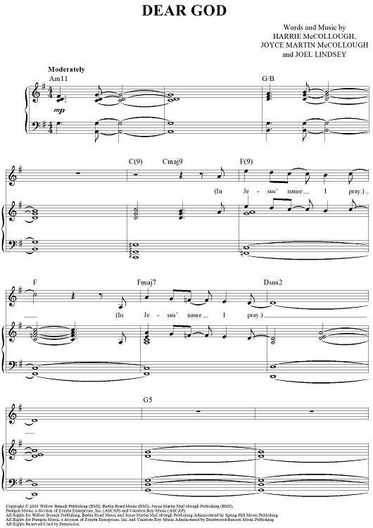 Digital Sheet Music for Dear God by Joel Lindsey, The Martins, Harrie McCollough, Joyce Martin McCollough scored for Piano/Vocal/Chords; id:380458